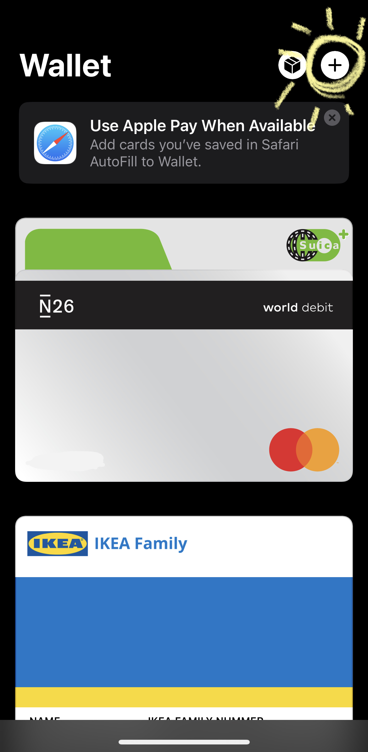 아이폰의 지갑 어플에 들어가서 + 를 누르면
