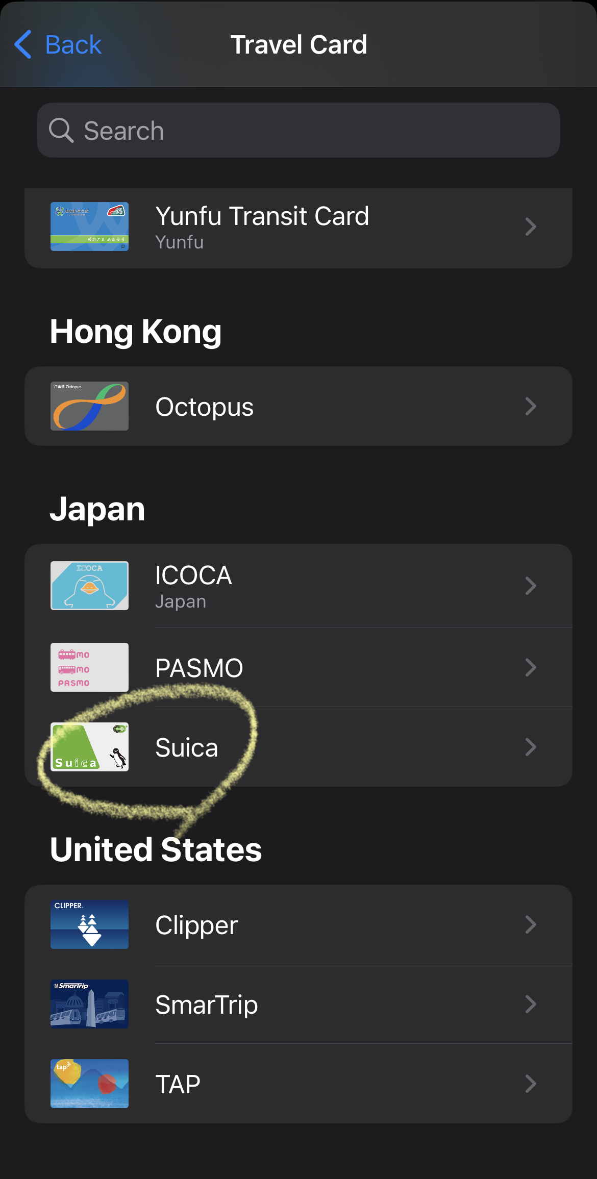 검색창에 suica라고 치거나 이렇게 밑으로 내리다보면