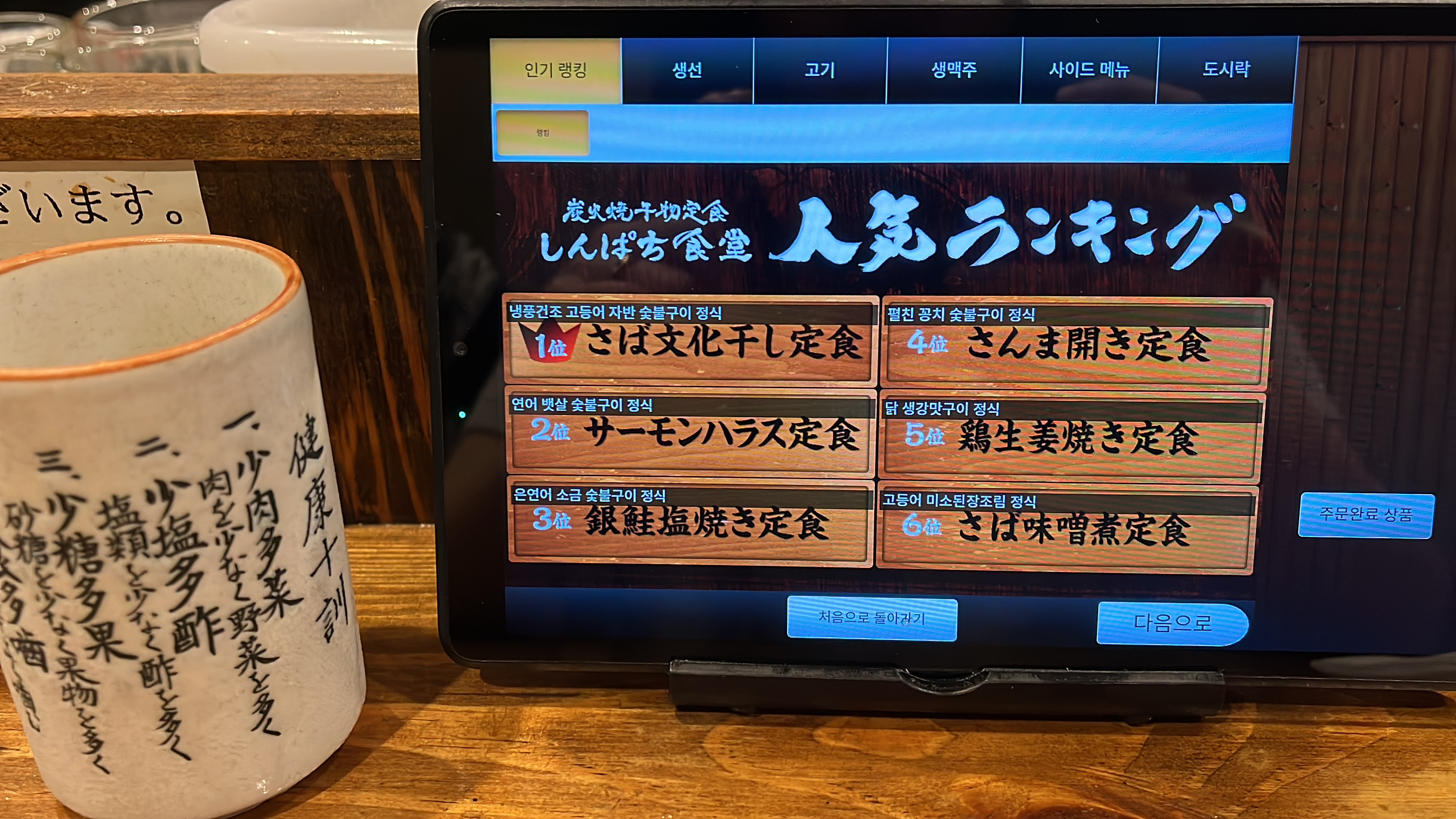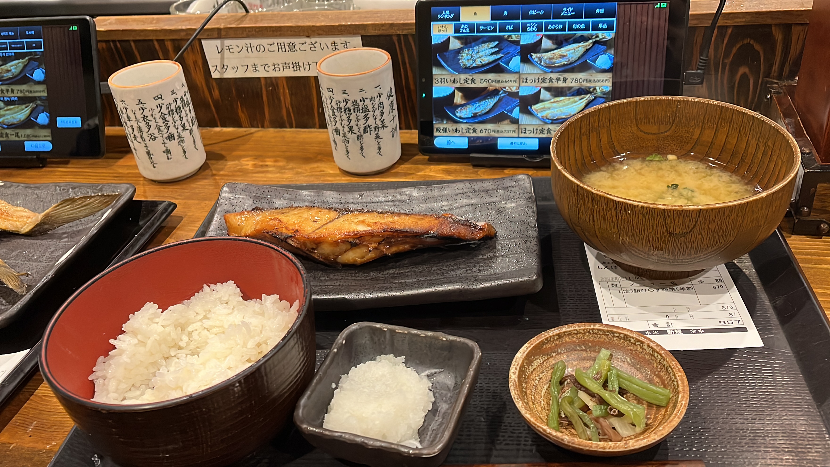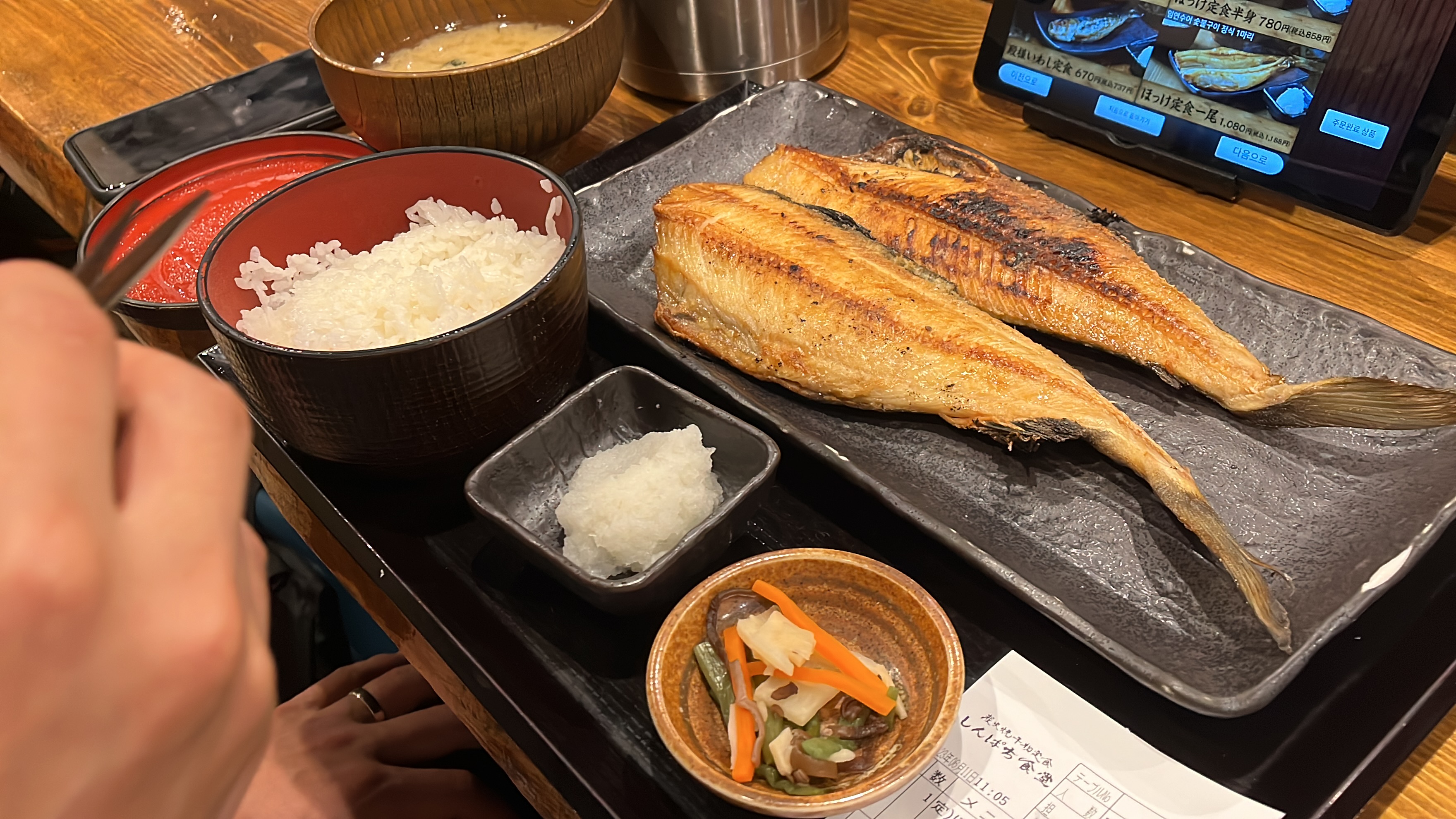 아침을 먹으러 호텔 근처에 있던 생선구이집에 갔다.