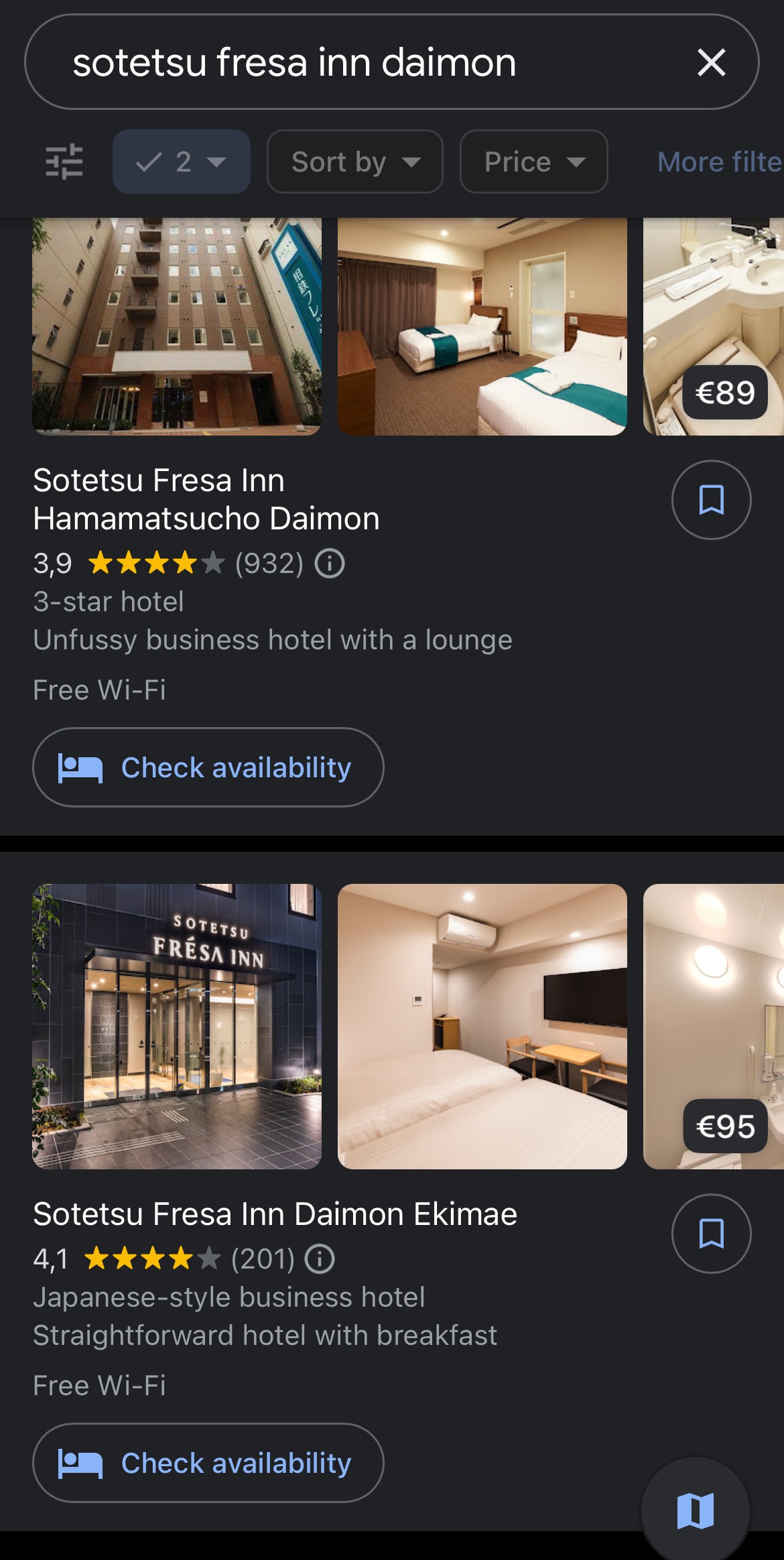 역에서 나와 구글 지도에 우리가 예약한 호텔인 Sotetsu Fresa Inn Daimon 을 검색해봤다.