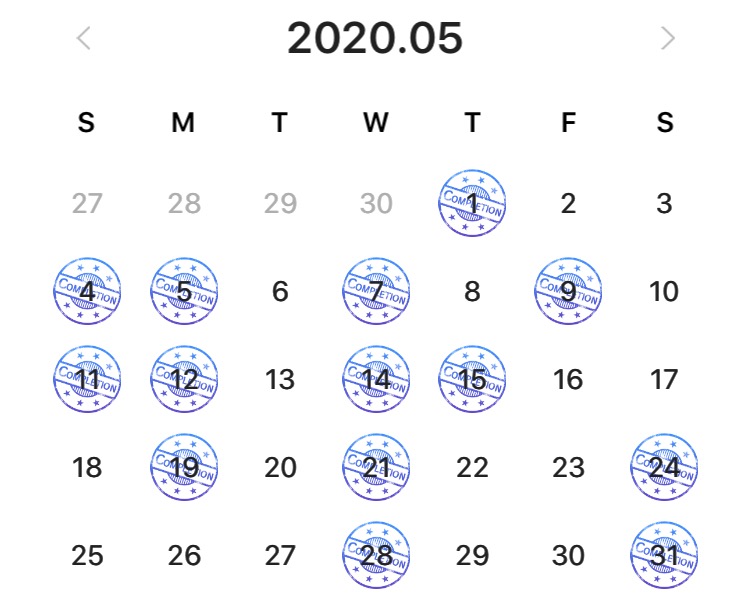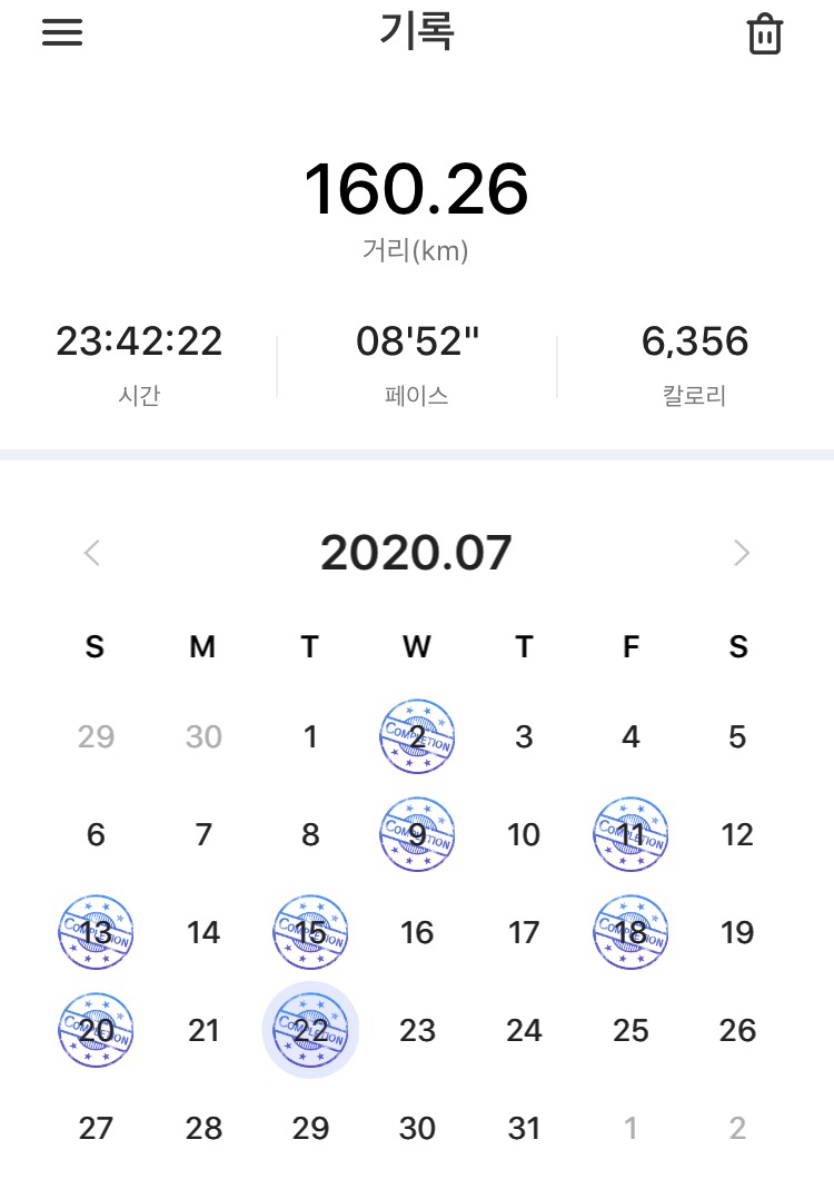 6월엔 달리기 스탬프가 뒤죽박죽이었는데 7월에는 예쁘게 찍히고 있다.