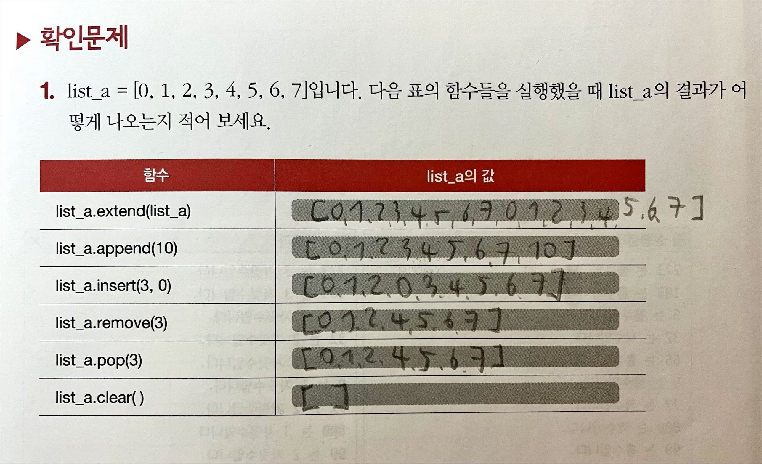 ✓ .extend(list) 리스트 뒤에 새로운 리스트의 요소 추가 (예: list_a.extend(["a", "b", "c"])
