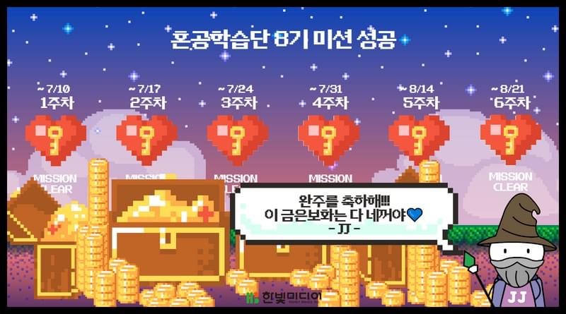 혼공학습단 8기는 7월 4일부터 8월 21일까지, 여름방학 1주 포함 총 7주동안 진행되었다.