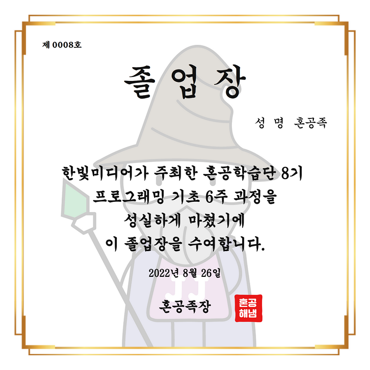 혼공족장님으로부터 혼공학습단 8기에 선정되었다는 메일을 받았던게 엊그제 같은데 벌써 시간이 이렇게 흘러 마지막 6주차 미션까지 클리어하였다!