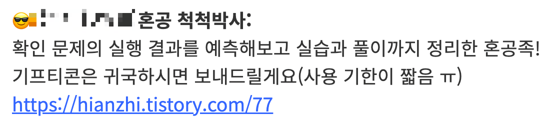 너무 감사하게도 1주차 혼공 척척박사 그리고 2주차 혼공 척척석사로 뽑혔다!!