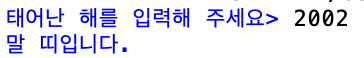 2주차 기본미션: p.137 3번 문제 풀고 본인이 태어난 해와 띠를 출력하는 결과값 화면 인증샷